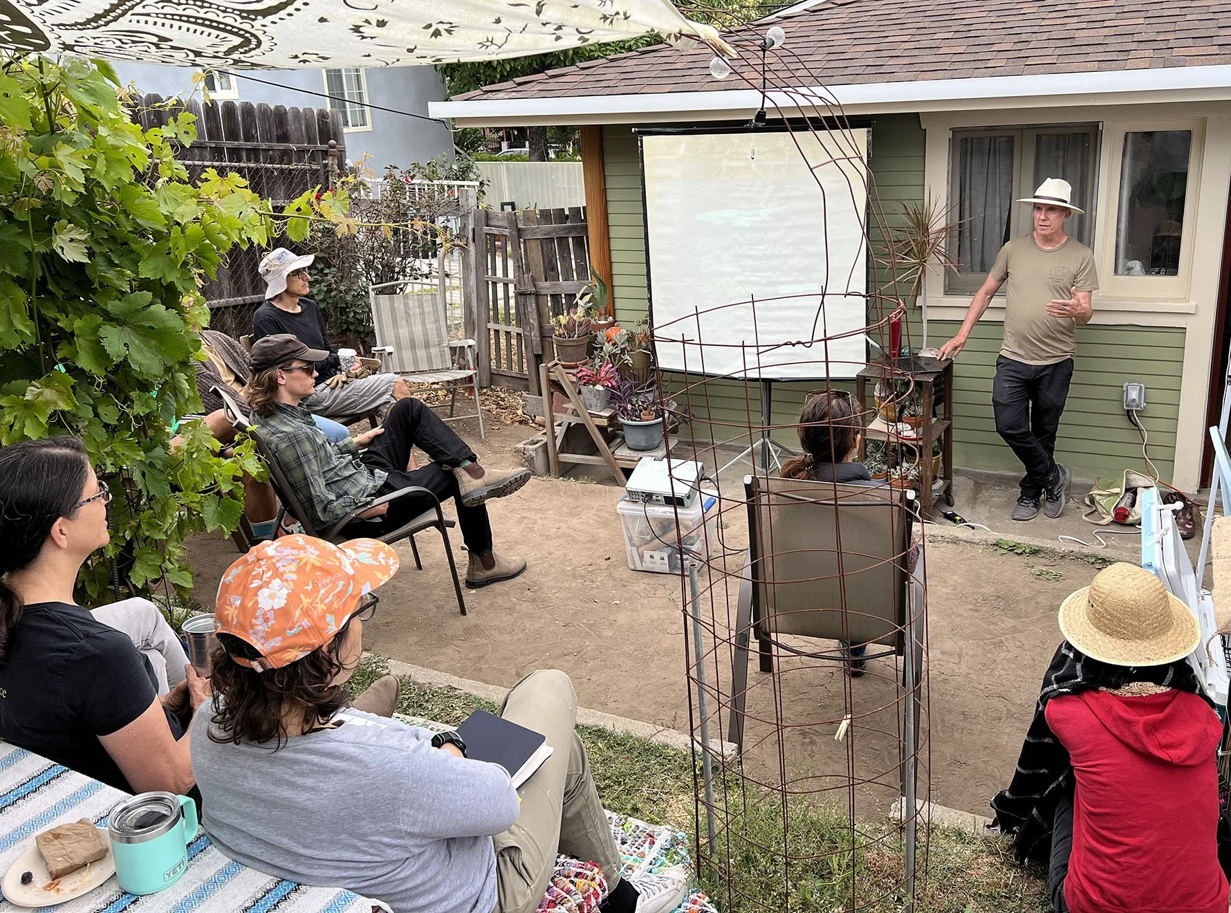 The morning kicked off with a round of introductions followed by a presentation from Leigh Jerrard covering the water situation in California and some greywater irrigation basics. Twenty-five of us had gathered to build a laundry-to-landscape system, a DIY favorite that does not require permits and delivers significant water to thirsty plants.