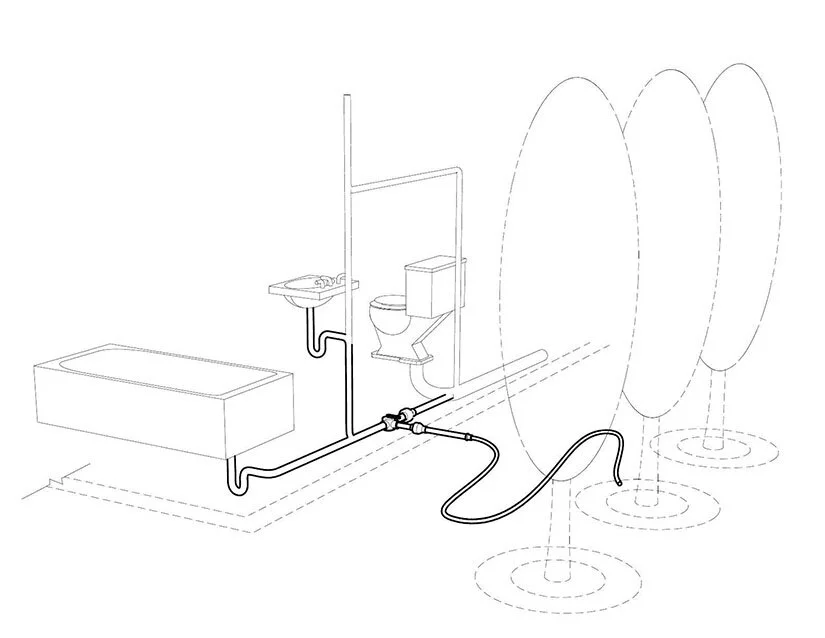 First, we modify your plumbing in order to separate greywater from blackwater. Once we have harnessed your greywater supply, it can either be treated or used as is. Most of our systems use untreated greywater, which requires specific forms of irrigation. Treated greywater allows for more flexibility in terms of irrigation. Water is distributed to your landscape by pump or by gravity, depending on the type of system.